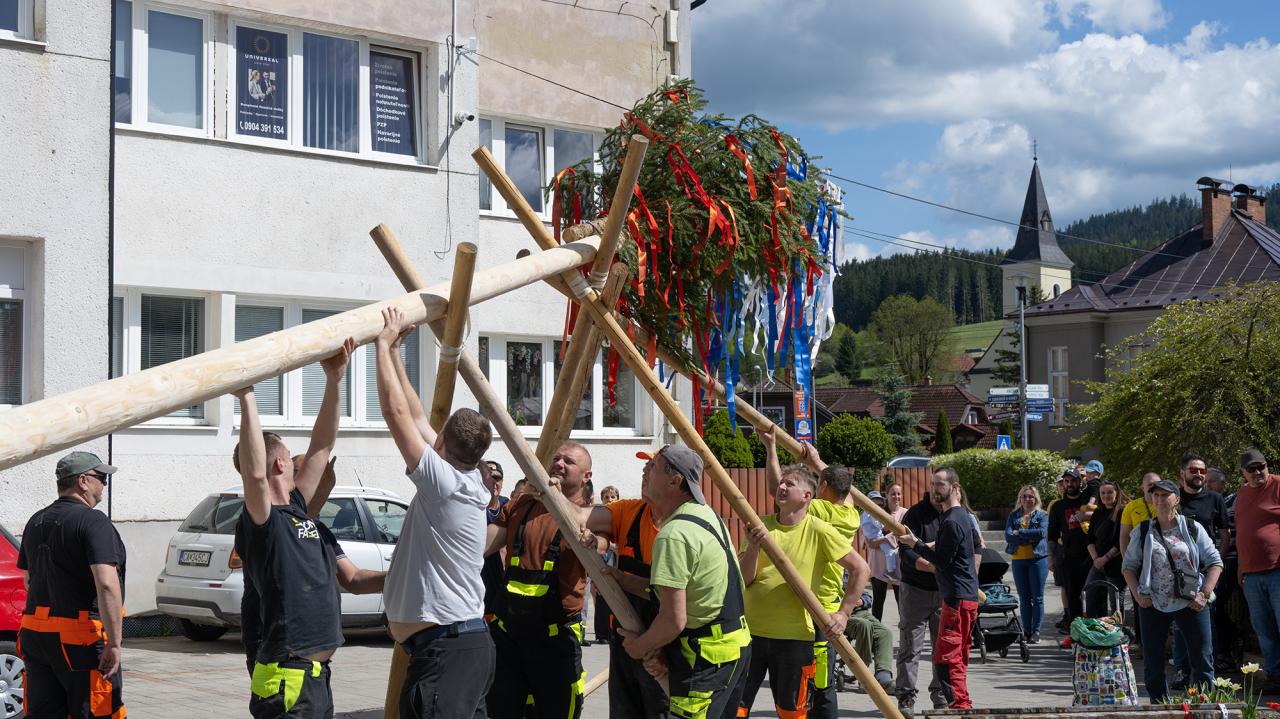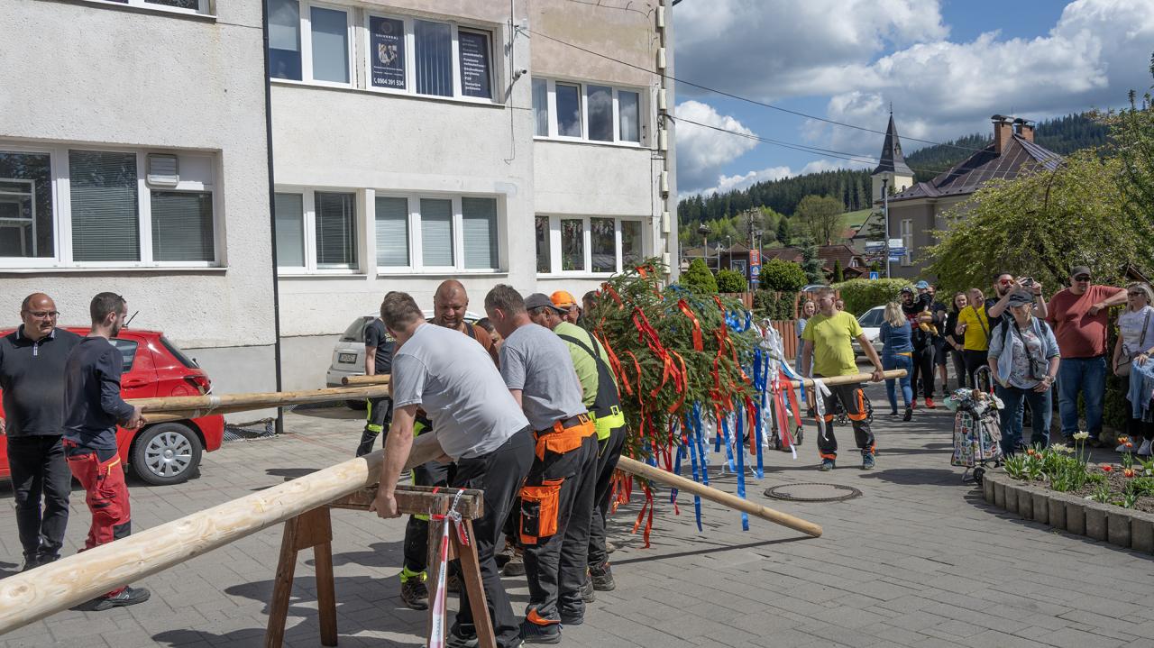 Samotné stavanie mája je vždy veľkou udalosťou. Ľudia sa zhromaždili pred obecným úradom, kde už netrpezlivo očakávali začiatok. Muži zo spoločnosti Gasparik, s. r. o. sa s pomocou dlhých tyčí pustili do práce. Dôležitá bola koordinácia a sila, aby sa mohutný strom dostal do zvislej polohy. Napätie sa dalo krájať. Keď sa máj konečne vztyčil, radosť bola obrovská.