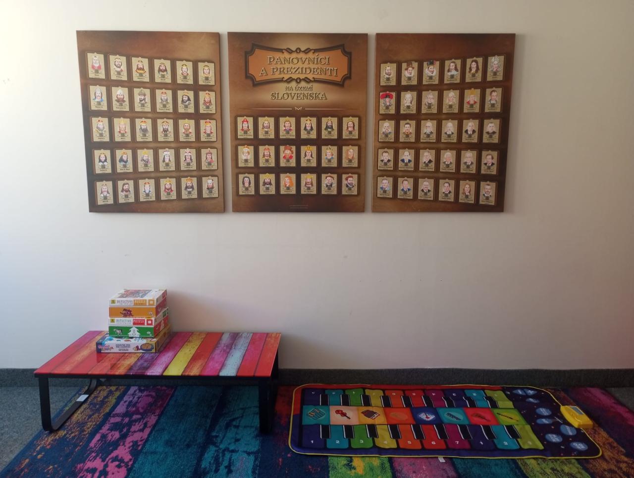 Expozícia v obecnej knižnici je venovaná všetkým panovníkom a prezidentom, ktorí ovplyvnili osudy nášho územia – od kniežaťa Sama, cez Mojmírovcov, Arpádovcov, mocných Habsburgovcov, až po prezidentov novodobej republiky.
