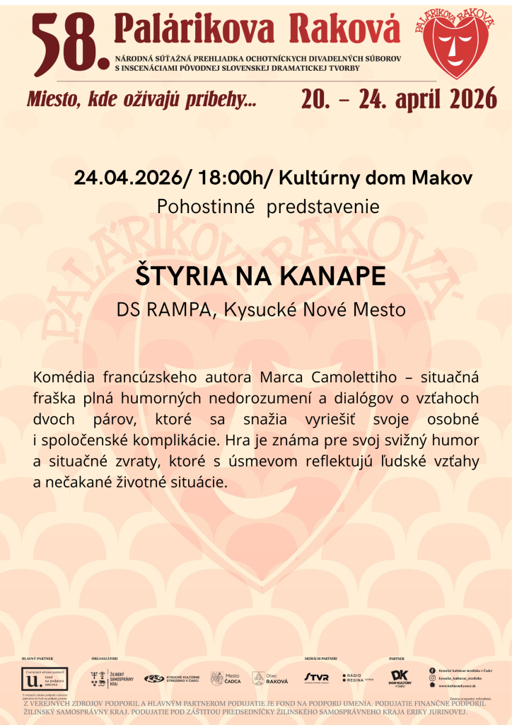 Podujatie sa uskutoční v rámci 58. ročníka Národnej súťažnej prehliadky ochotníckych divadelných súborov PALÁRIKOVÁ RAKOVÁ